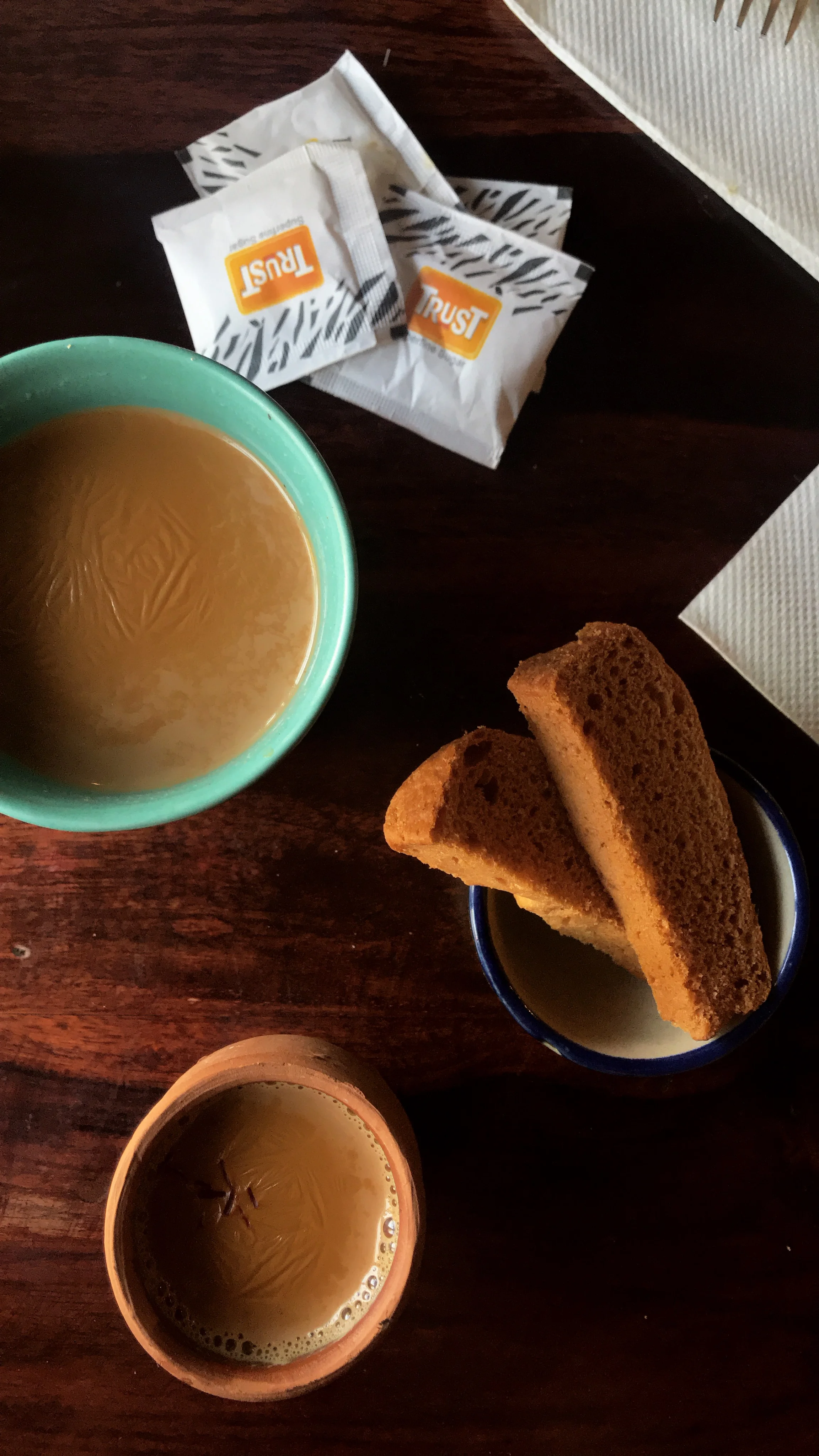 Try masala chai. It's made with cow's milk, chai leaves, masala spice, and sugar and you can buy it on the street and in any cafe, guaranteed! On the street, it's usually 10Rs! Sooo cheap.