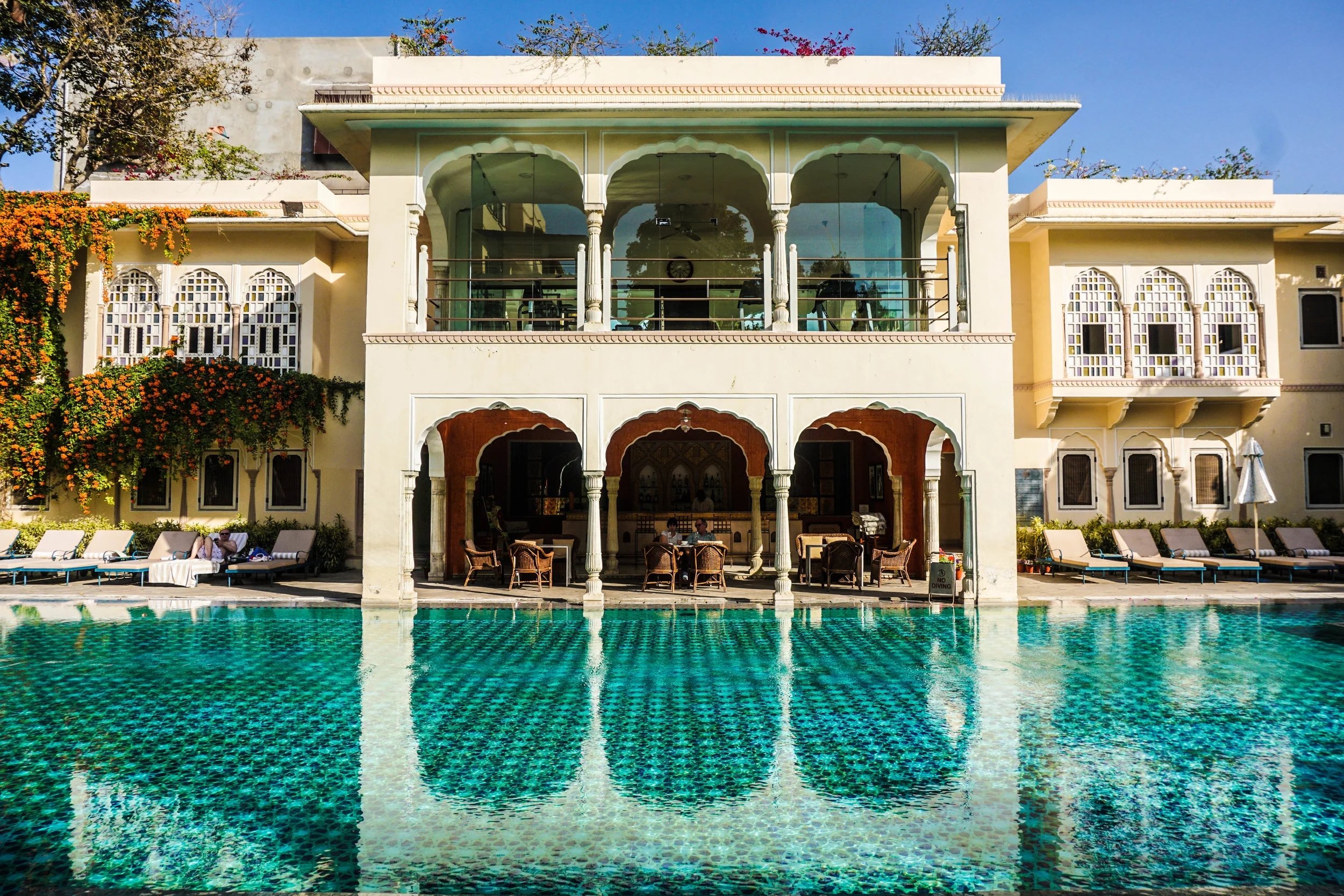 Two stunning luxury hotels worth a visit in Jaipur are the Samode Haveli and Narain Niwas Palace Hotel. Samode Haveli is perfect for at least stopping in for lunch or a drink. Itβs an incredibly beautiful space and was once a traditional Indian mansion back in the day. There are lush plants and flowers blossoming in every corner of the property, making it an ideal spot for spending a lazy afternoon and grabbing a drink.